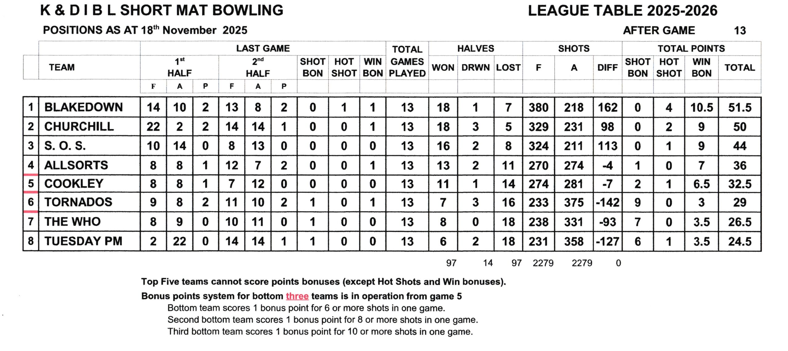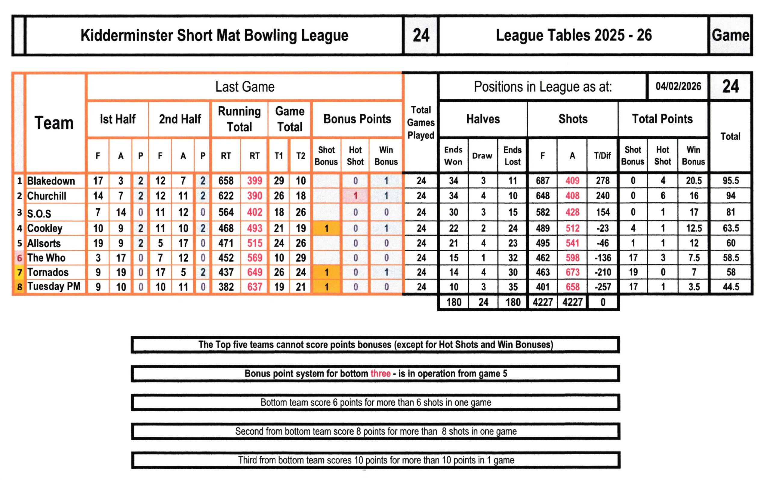 Anyone interested in becoming involved with short mat bowling is invited to come along to the civic hall at Stourport on one of the league evenings to see what is happening, or alternatively contact – Richard Rose – rstanr@yahoo.co.uk
