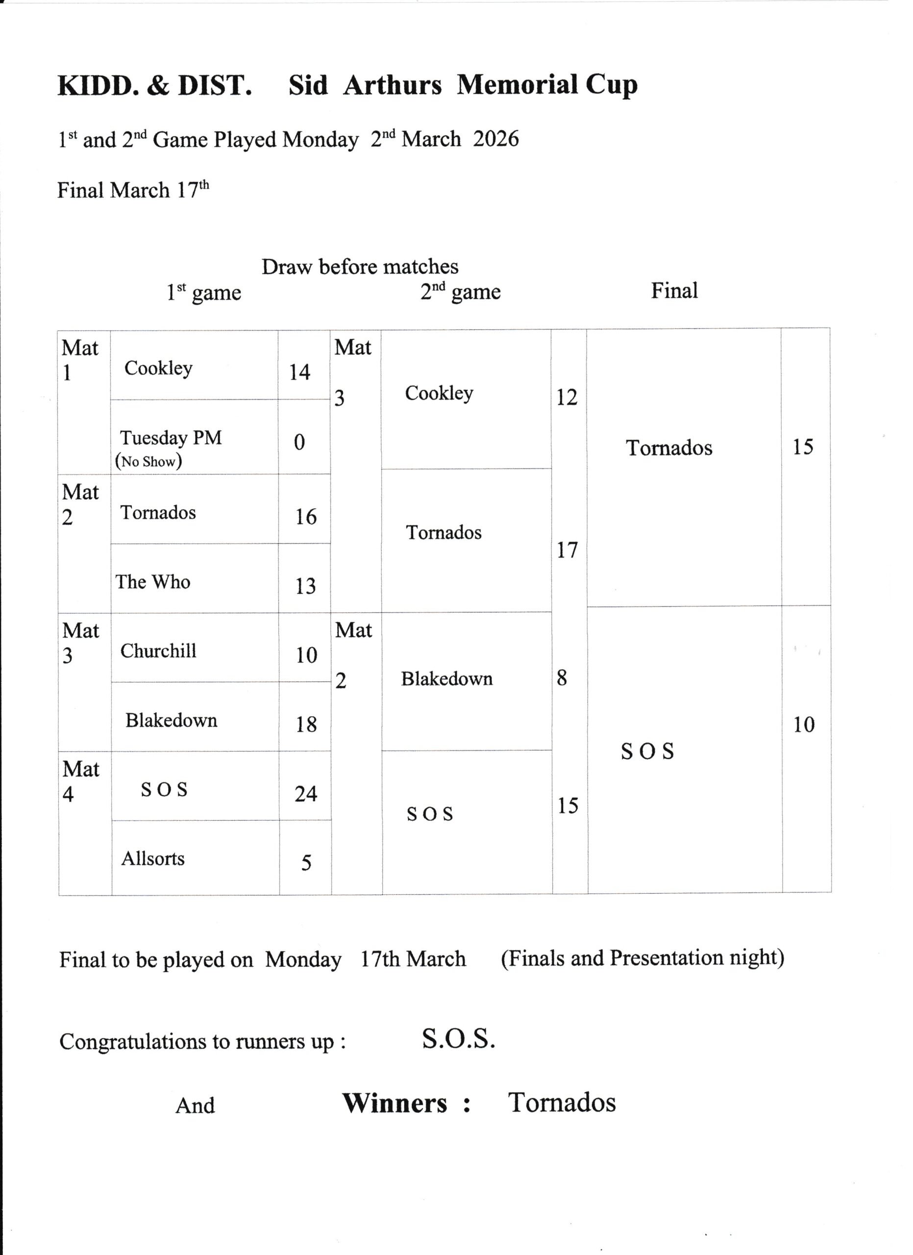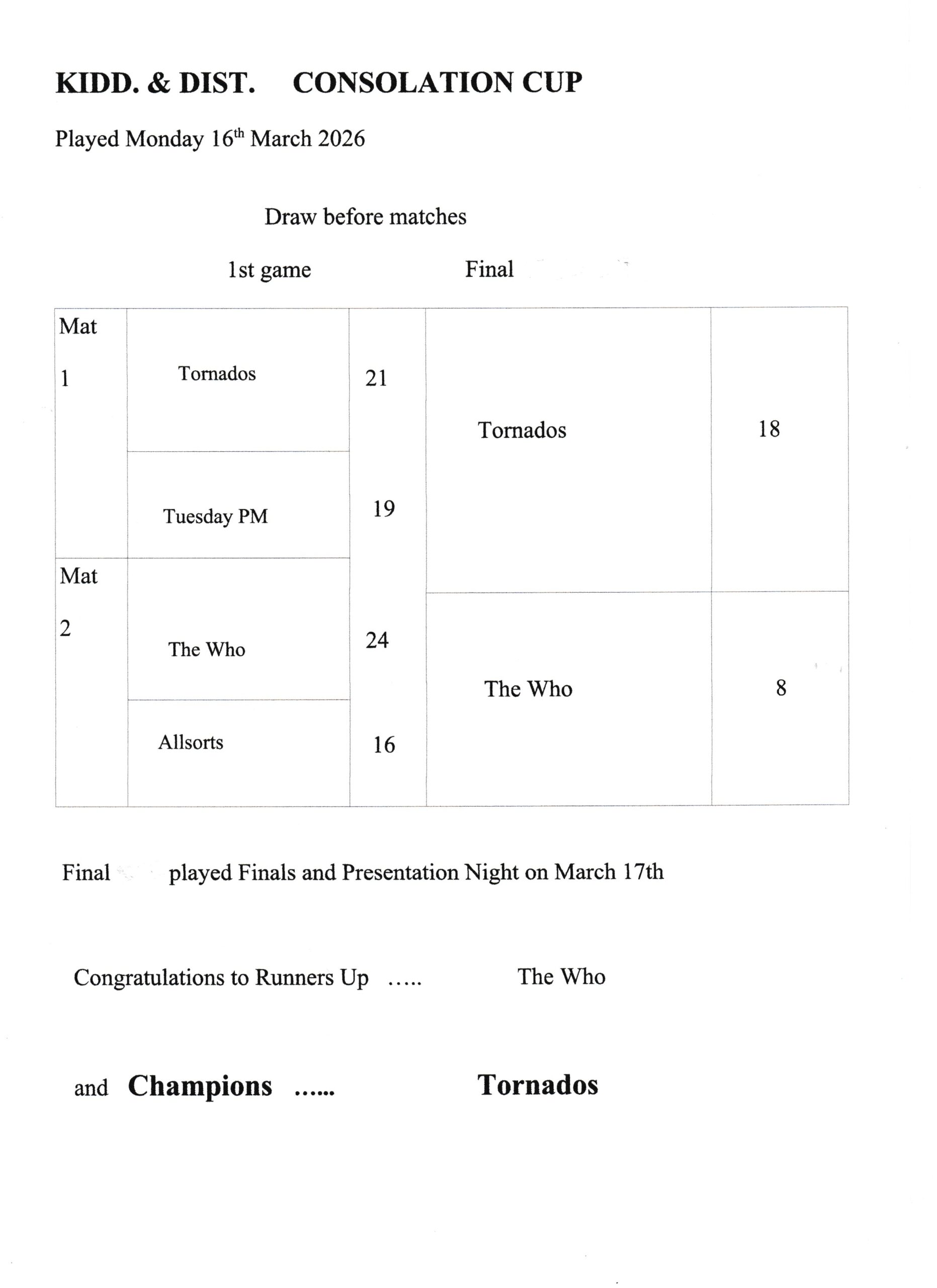 CONSOLATION CUP – 16TH / 17TH MARCH 2026.