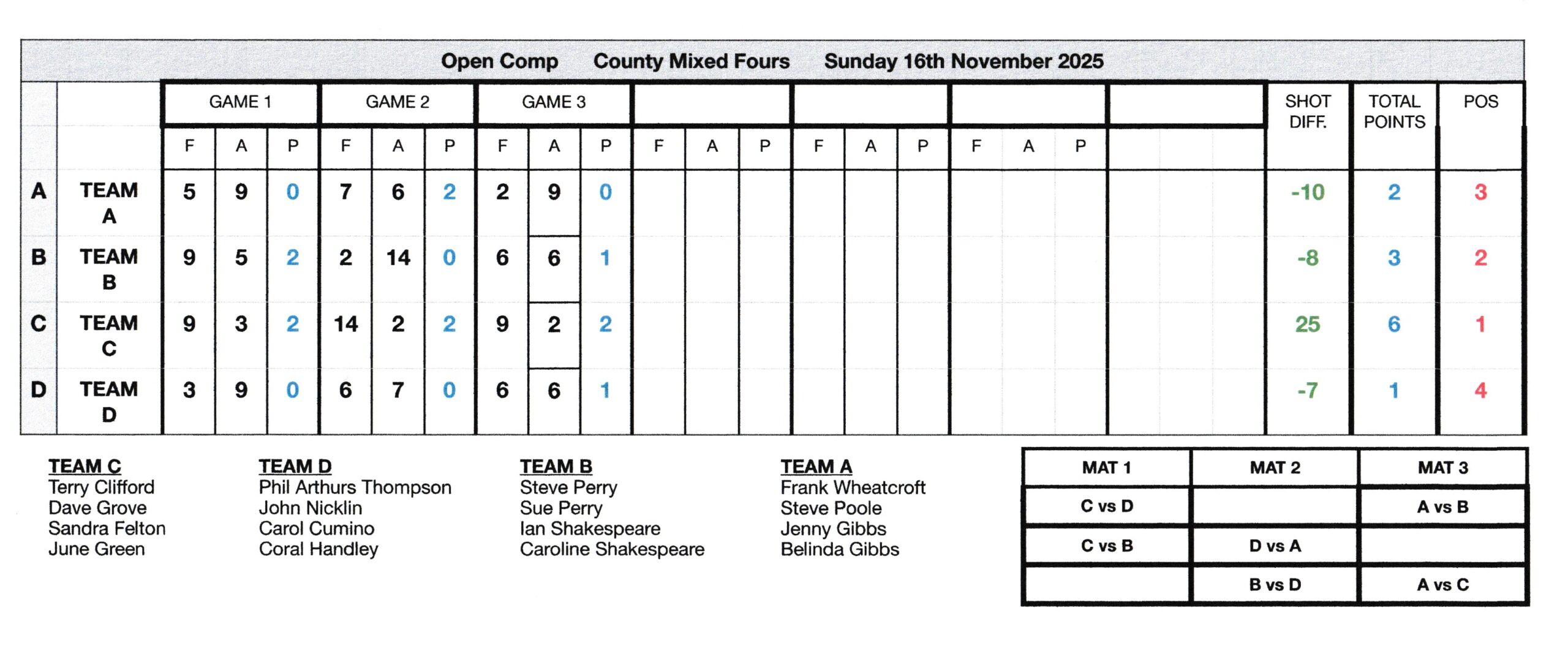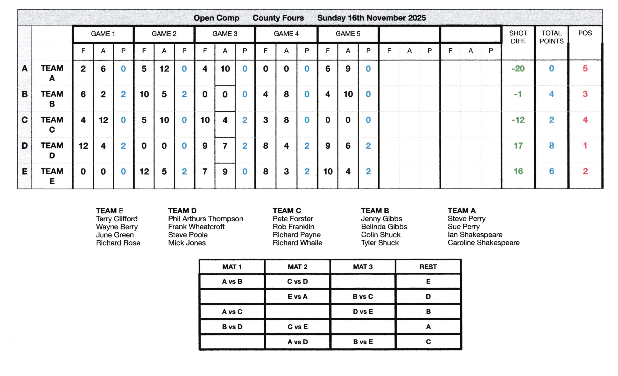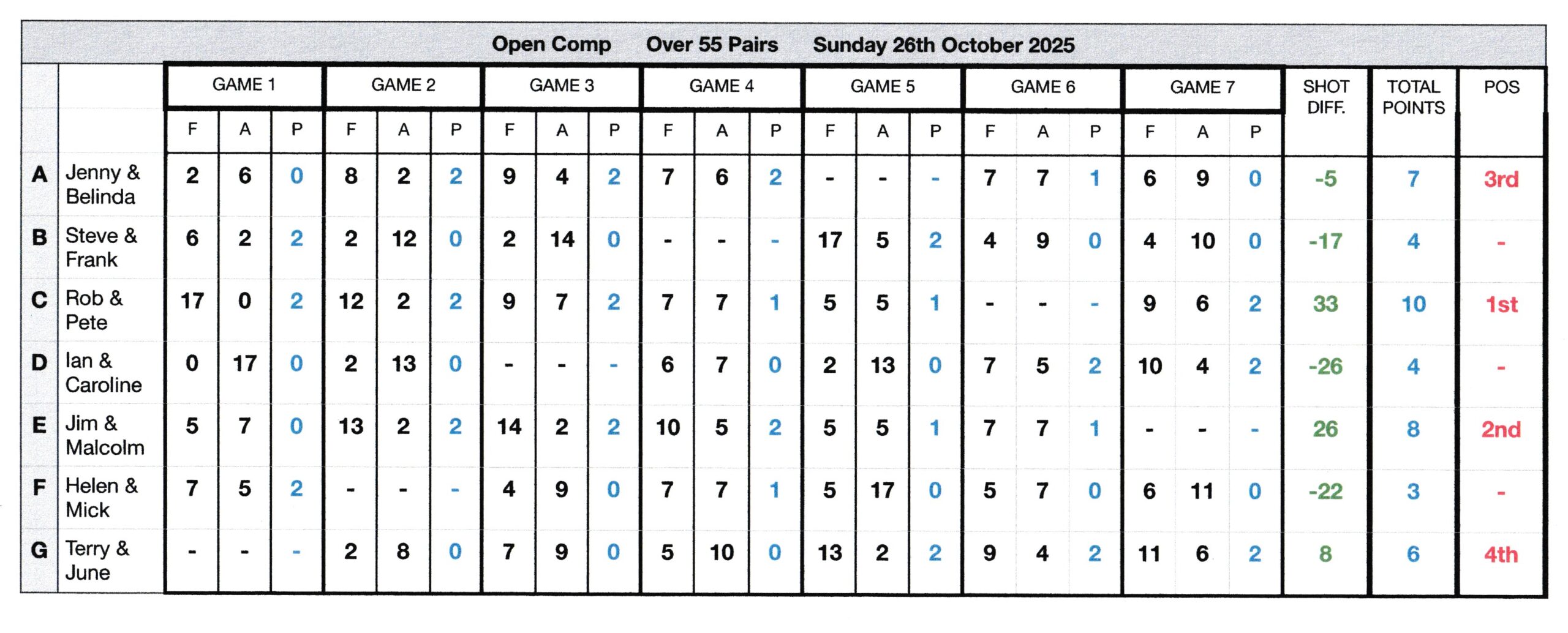 OVER 55s PAIRS – PLAYED AT BLAKEDOWN ON SUNDAY 26TH OCTOBER 2025.