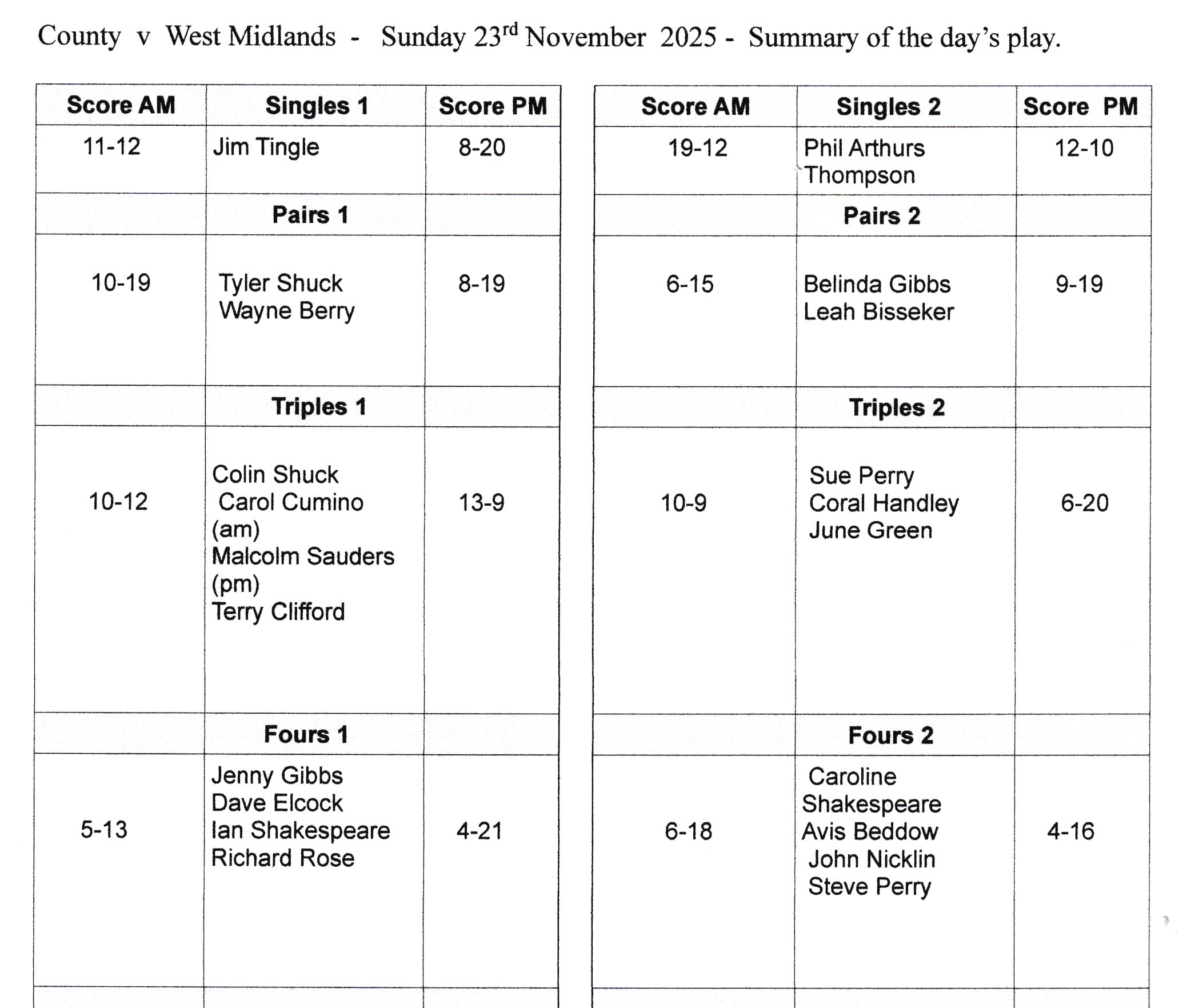 Of the 16 individual games played the county had two wins in the singles and two wins in the Triples.